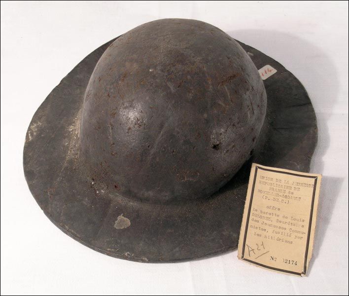 "Barette" (casque de mineur) Cette barette fut offerte à Maurice Thorez par les jeunes militants de Noyelles-Godault, sa ville natale. Elle appartenait à Louis Delobel, secrétaire de la Jeunesse communiste locale, fusillé par les Allemands.