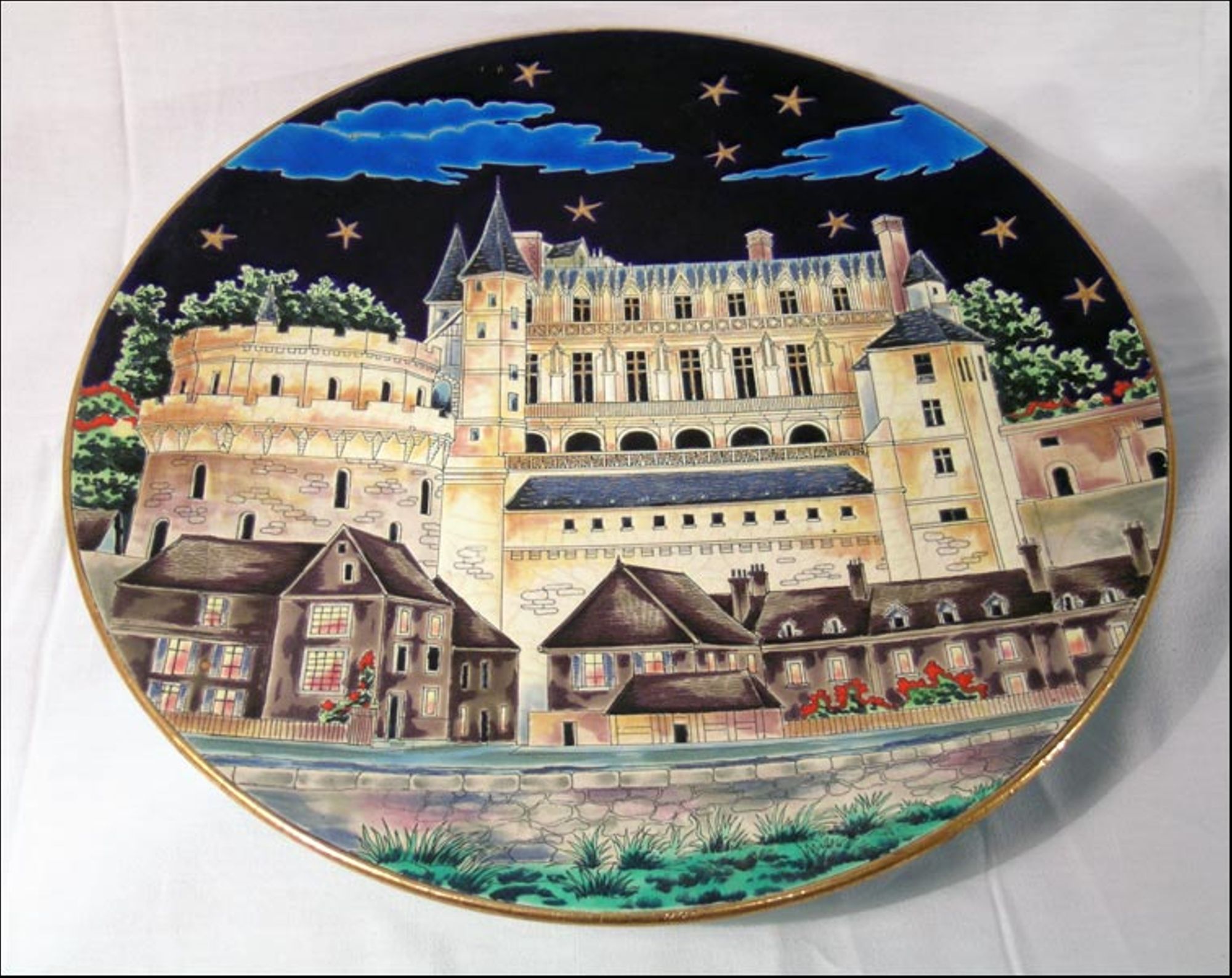 Le décor de ce plat, réalisé en émail " cloisonné ", représente le château d'Amboise.