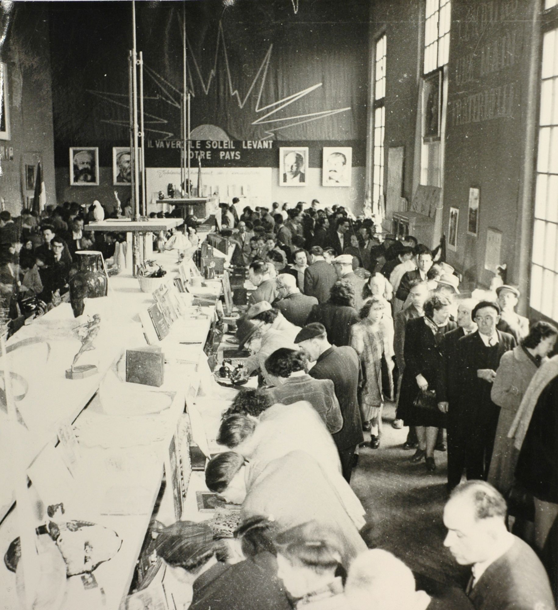 La collection de cadeaux du fonds Thorez-Vermeersch est constituée de plus de mille documents et objets offerts à Maurice Thorez et Jeannette Vermeersch au cours de leur carrière politique. La pratique des cadeaux offerts aux dirigeants du PCF peut être délimitée dans le temps. La presse communiste mentionnait déjà, sous le Front populaire, des cadeaux offerts au jeune leader Thorez. Les années d’après-guerre virent la pratique se systématiser : tout déplacement de Thorez devenait alors prétexte à lui offrir les gages de la reconnaissance des militants, notamment pour son action au gouvernement de 1945 à 1947. L’usage des cadeaux devait toutefois culminer au printemps 1950, tandis que le PCF siégeait dans l’opposition. La célébration du 50ème anniversaire de Thorez, le 28 avril 1950, motiva en effet une grande collecte de cadeaux au sein du PCF et des organisations qui en dépendaient. Ces cadeaux, dont la liste s’allongeait jour après jour dans L’Humanité, furent présentés lors d’une grande exposition à l’hôtel de ville d’Ivry. Dans le contexte de la guerre froide, cette exposition était une démonstration de force du Parti communiste.