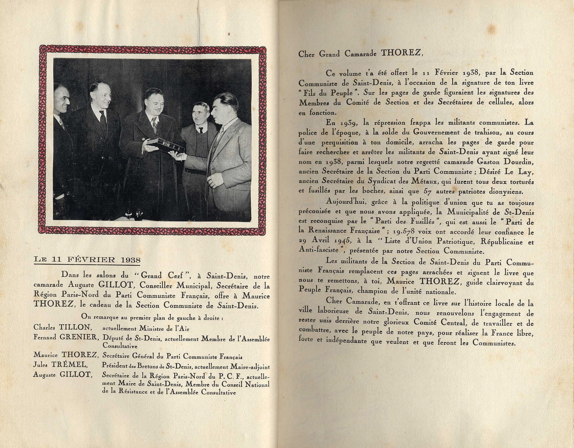 La bibliothèque de Thorez compte aujourd’hui quatre volumes dédicacés en leur temps à Charles Lesca par des auteurs collaborationnistes : Charles Maurras, Buenaventura Carrera, le général Paul Azan… et Bernard Faÿ, ancien directeur du Service des sociétés secrètes, service commanditaire de la saisie des trois livres non restitués à Thorez à la Libération. Ce surprenant reclassement en retour de balancier clôt de façon presque allégorique la trouble période de l’Occupation.