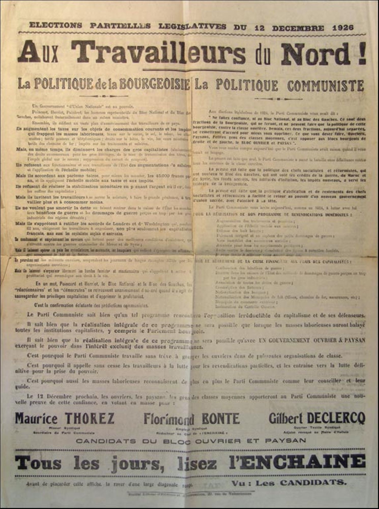 Tandis que son ascension au sein des instances locales et nationales du Parti s'accélère, Maurice Thorez est, pour la première fois, candidat à la députation, à l'occasion des élections législatives partielles de décembre.