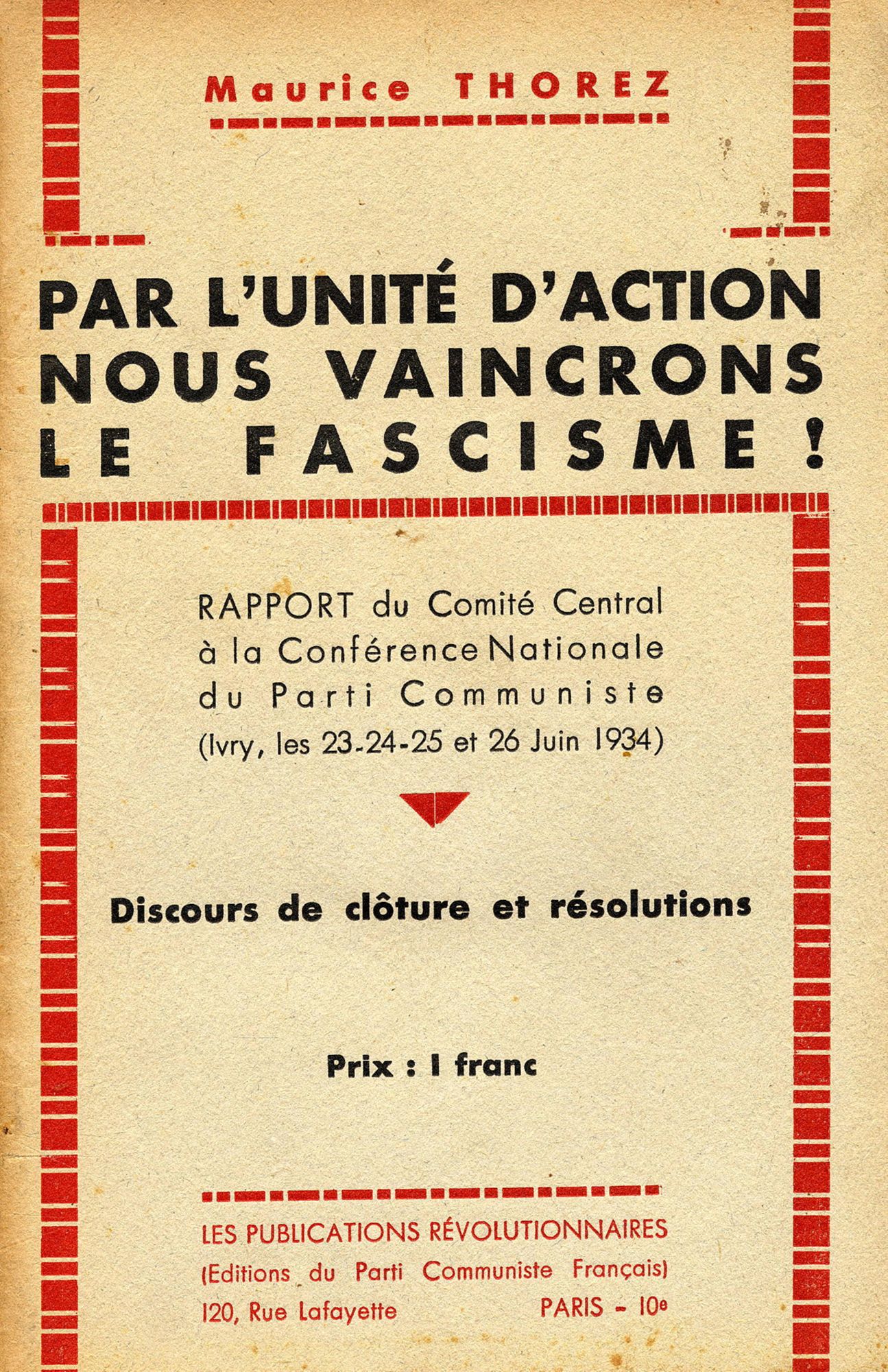 Face aux ligues d'extrême-droite, les antifacistes s'organisent. L'Internationale communiste change de ligne, et le nouveau mot d'ordre pour le PCF est celui de "l'unité à tout prix" avec le Parti socialiste. Le 9 octobre , lors d'un meeting salle Bullier, à Paris, Thorez lance pour la première fois l'idée d'un "Front populaire de la liberté, du travail et de la paix".