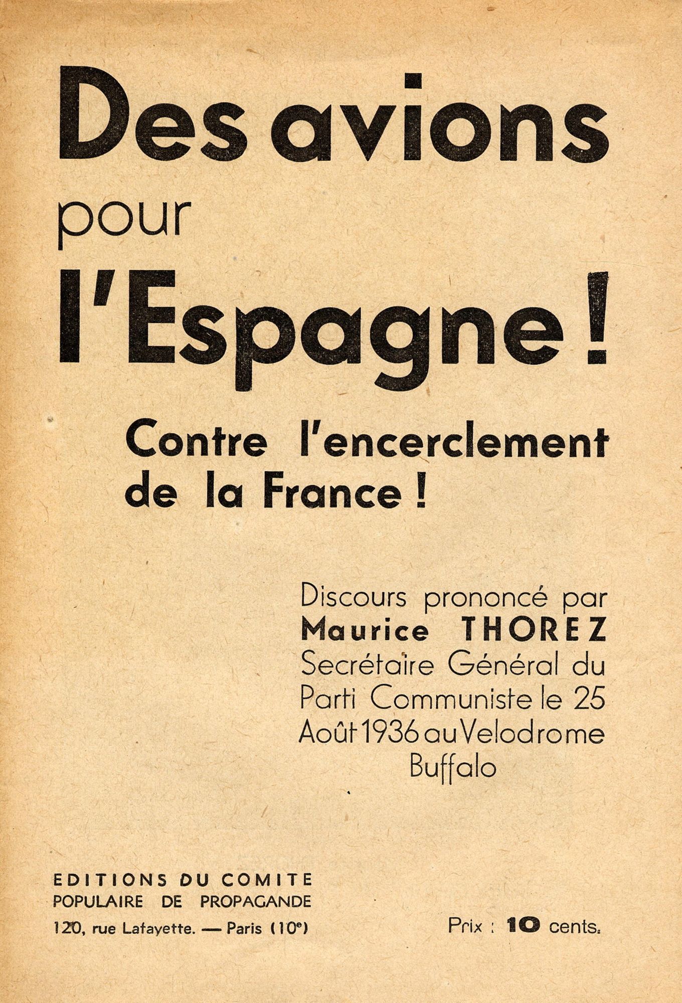 Discours de Maurice Thorez dénonçant la non-intervention de la France dans la Guerre civile espagnole.