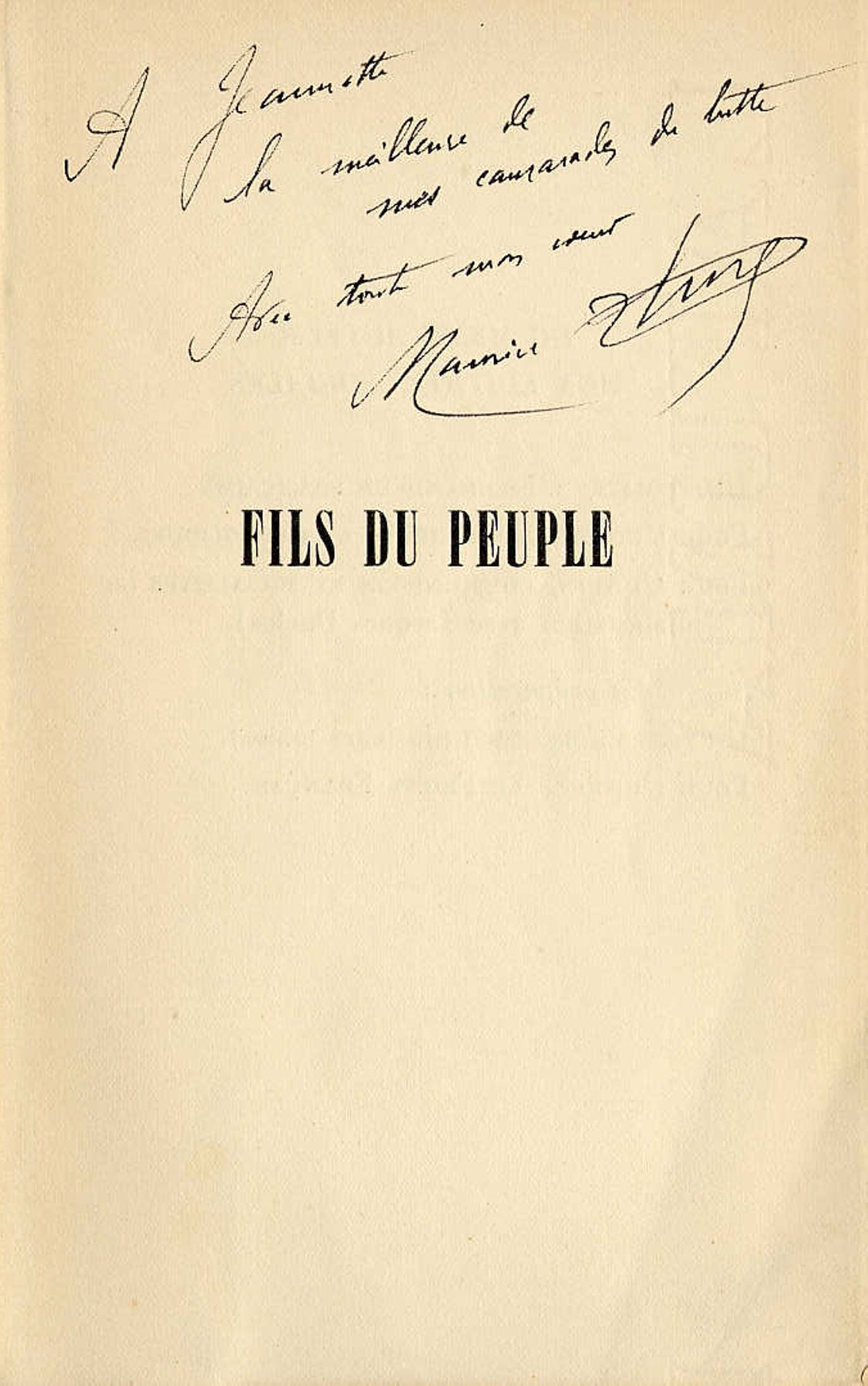 Le 25 octobre 1937, alors que la popularité de Maurice Thorez est au plus haut, paraît la première édition de Fils du peuple, récit autobiographique du secrétaire général, écrit avec l'aide de Jean Fréville. A la fois recueil de souvenirs et guide désigné pour le militant de base. Fils du peuple dénote aussi, à travers ses cinq éditions successives, les orientations du Parti.