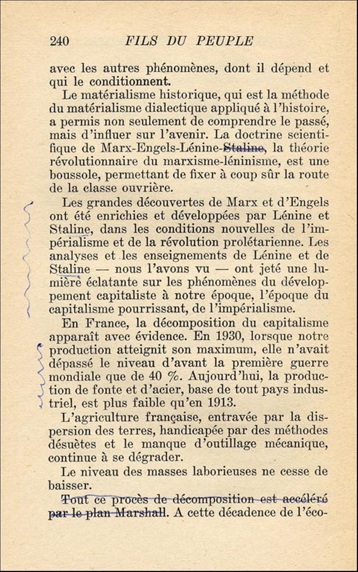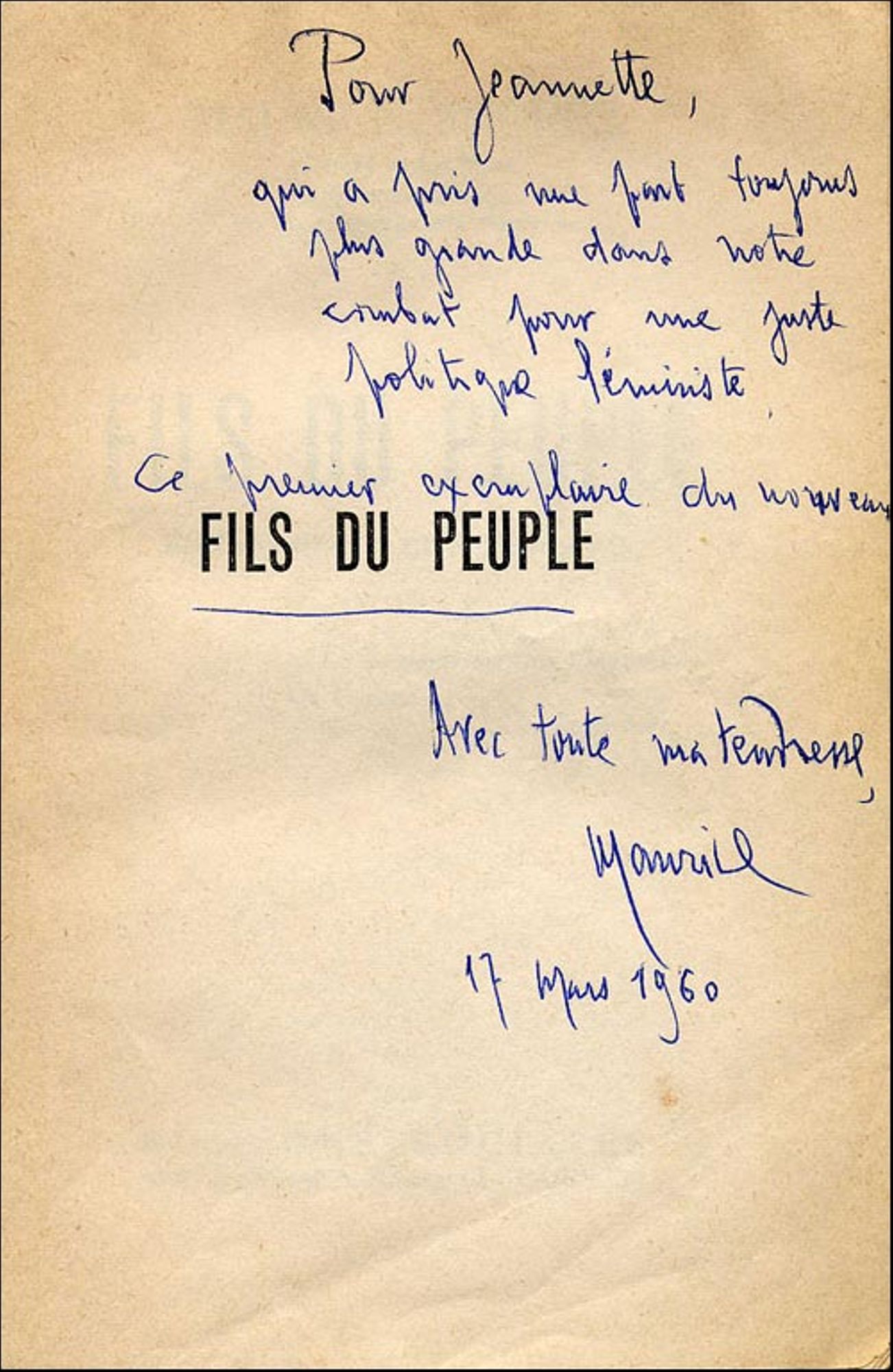 Exemplaire dédicacé par Maurice Thorez à Jeannette Vermeersch. Après son attaque d'hémiplégie, Thorez s'efforçait d'écrire de la main gauche, la droite étant paralysée.