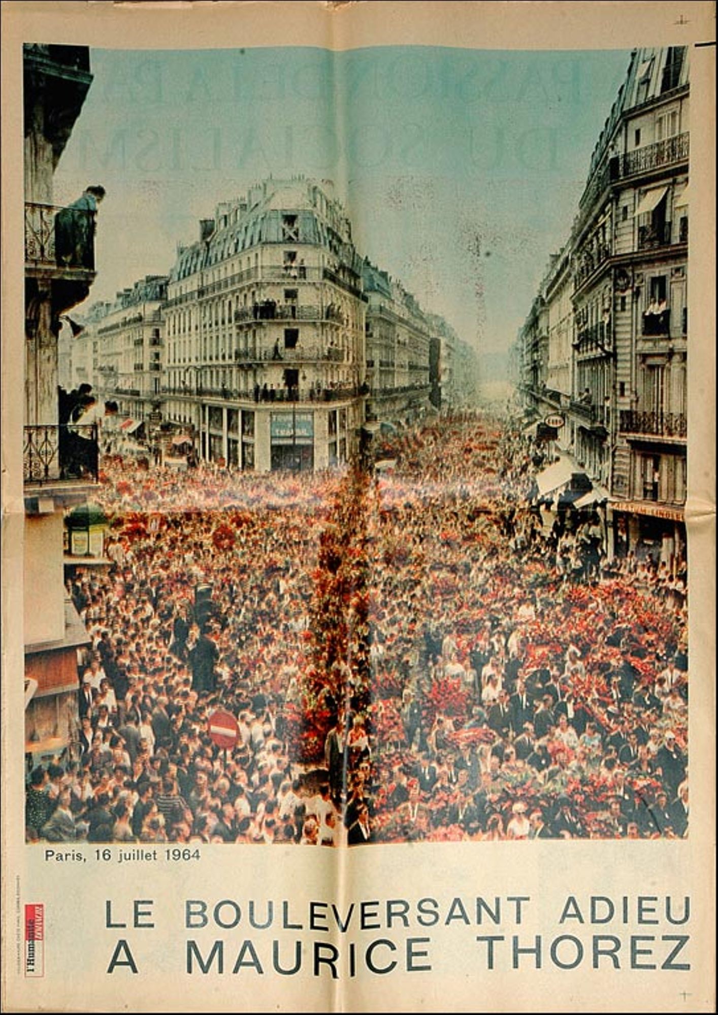 Le 12 juillet, une attaque cérébrale terrasse Maurice Thorez en Mer Noire, à bord du navire Litva qui l’emmenait passer ses vacances, comme chaque année, en URSS. Pour celui qui fut son chef pendant plus de trente ans, le Parti communiste français organise, le 16 juillet, des funérailles grandioses au Père-Lachaise, à Paris.
