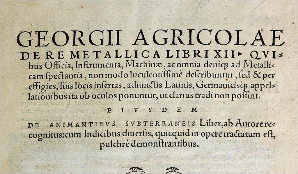 George Agricola Georgius Agricola est la version latinisée du nom de l'auteur, Georg Bauer La ville de Joachimsthal, où Georg Bauer vécut parmi les mineurs, se situe aujourd'hui en République tchèque et porte le nom de Jachymov.