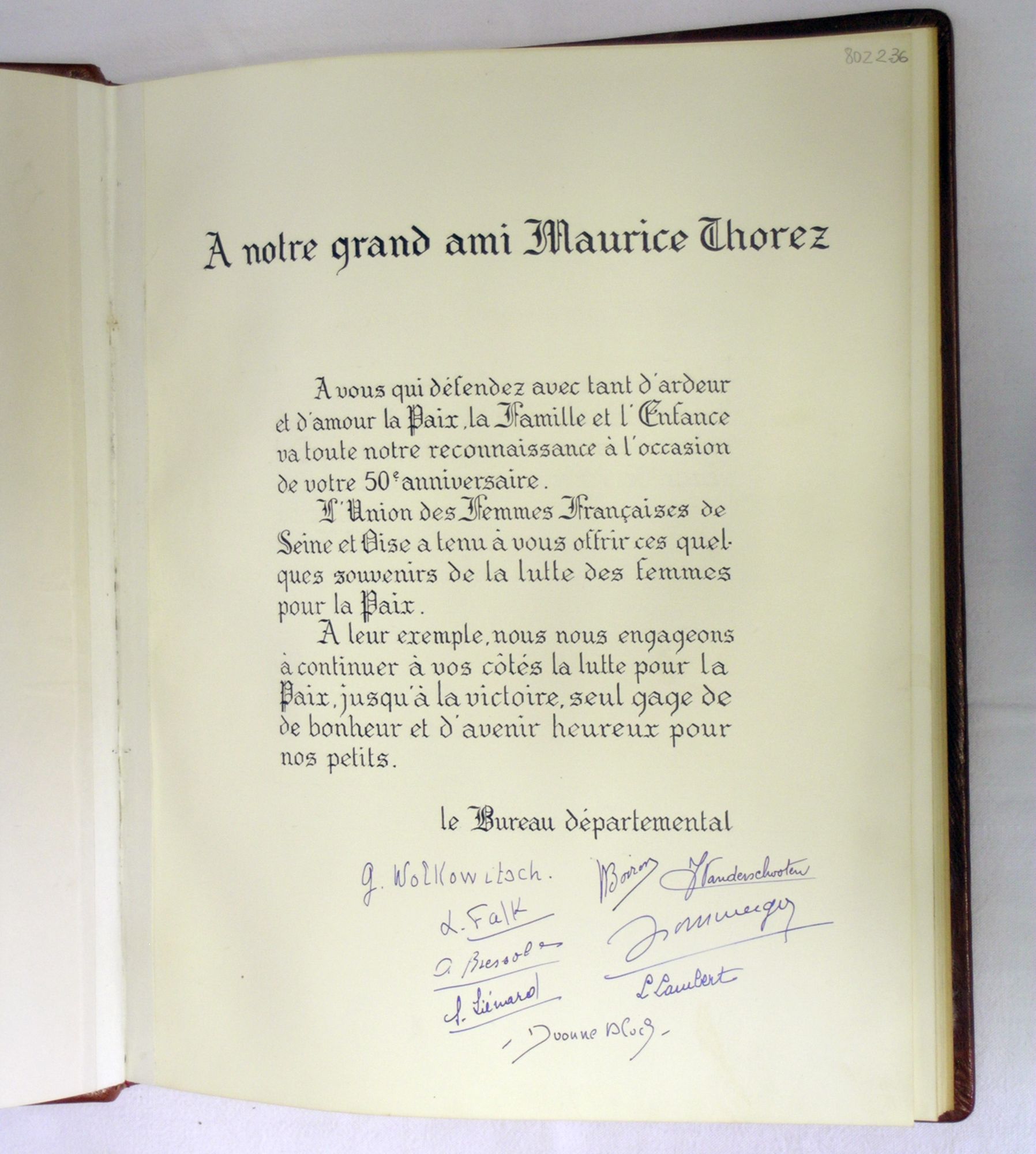 L'album de Mademoiselle Bouvard Pour les 50 ans de Maurice Thorez, l'UFF de Seine-et-Oise a confectionné un album à l'aide de documents confiés par une vieille militante syndicaliste et féministe, Stéphanie Bouvard. Album d'une vie militante :