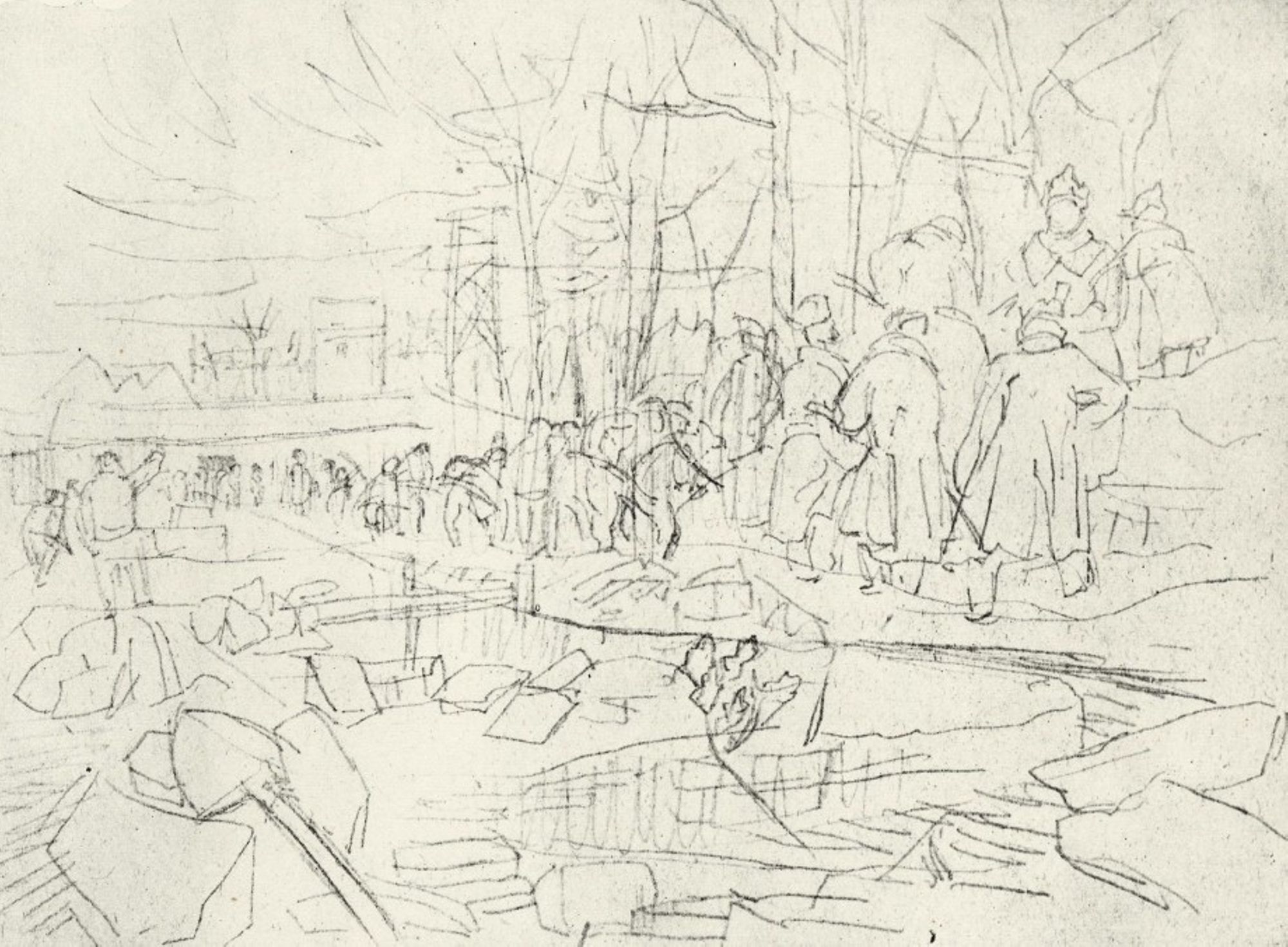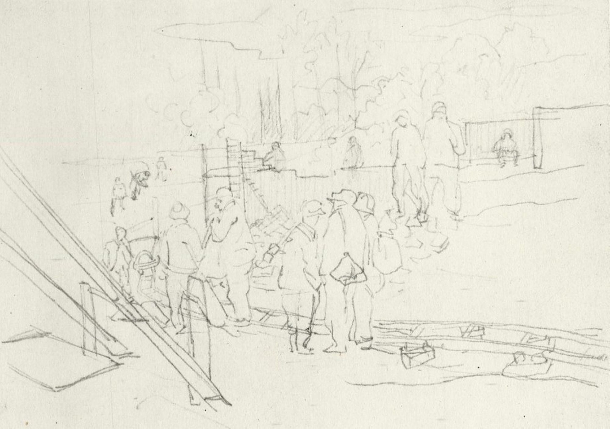 Dessin de Boris Taslitzky. D'après les témoignages de Marcel Rousseau et Lucien Artous, anciens déportés, les conditions de travail étaient dures pour plusieurs raisons : les wagonnets étaient remplis de blocs de sel, poussés par seulement deux à quatre hommes, extenués sous le poids surhumain de ces charges, sur des longues distances.