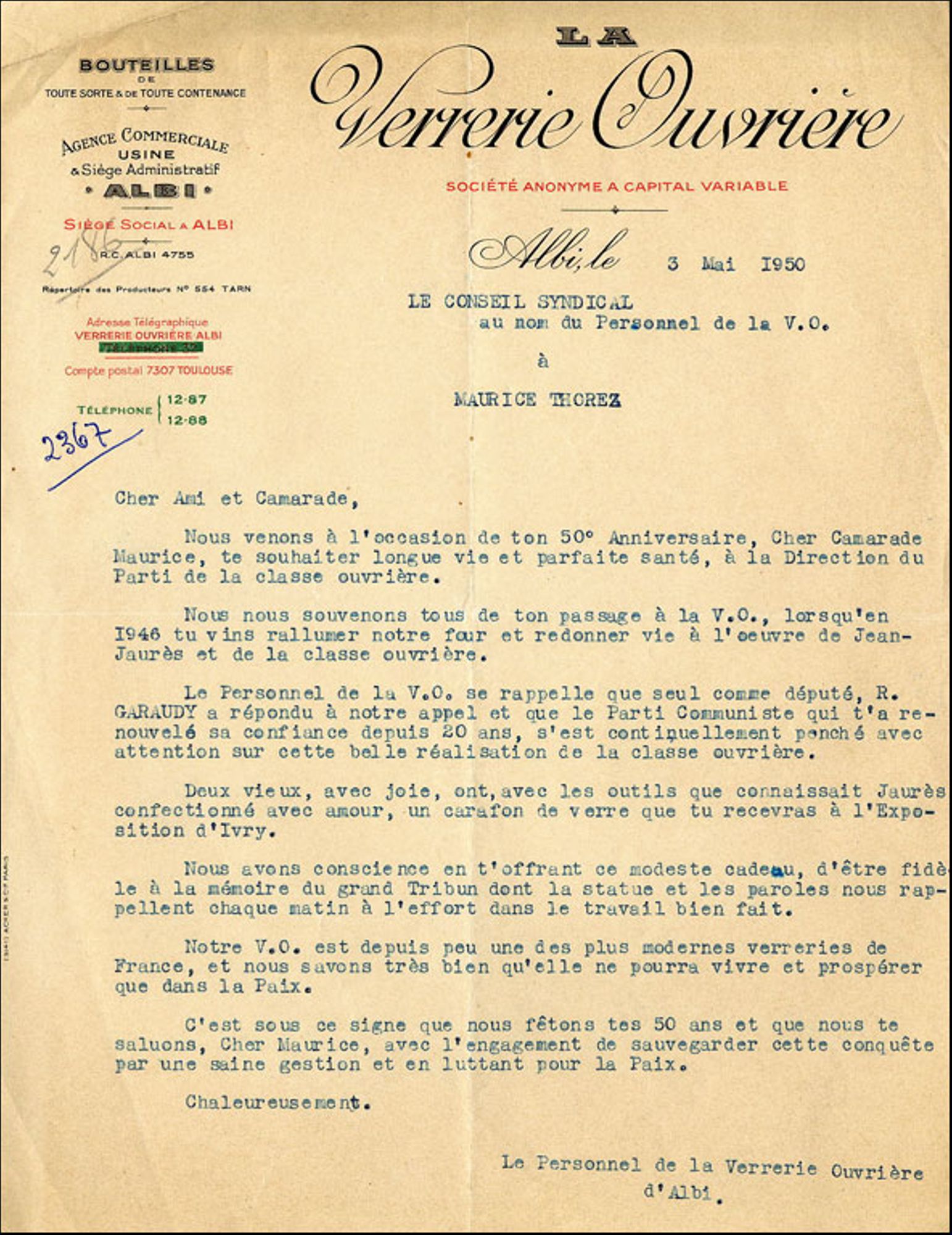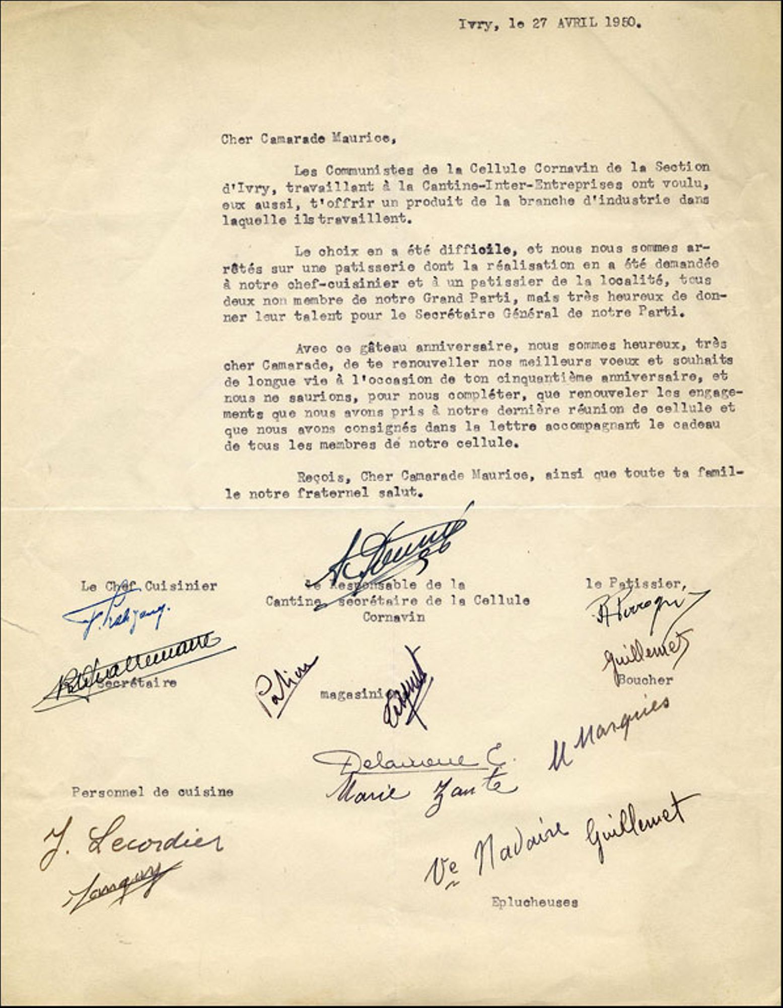 Collection des lettres du 50ème anniversaire / Archives communales d'Ivry-sur-Seine.